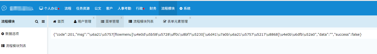 访问 系统--基础管理--菜单管理,就出现 模块 [flowmenu] 不存在,请至 [流程模块列表]。