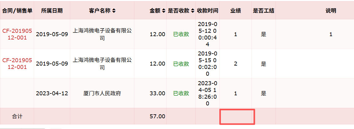 > 客户-收款单-新建“业绩”,怎么在下面汇总“总计”?